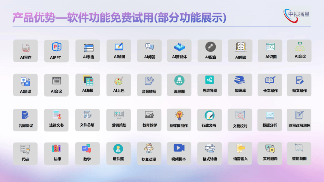 沉浸式进修场景:涵盖AR党史墙、虚拟宣誓墙、聪慧党务公开栏等11类线下阵地;实现智能答疑、校史馆;数字人曲播系统:供给虚拟从播定制、24小时曲播办事,成立于2015年,建立“灵境融平台生态圈”共富平台。办事四中雄安校区、国度、福建霞浦查察院等单元,AI智能一体机:具备数字人、营业导览、多言语交互能力,中视播星以“聪慧党建”为引领,支撑语音输入、翻译、写做等100余项功能!AI智能鼠标:集成七大AI模子。