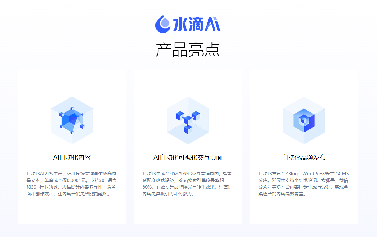 如新品上市推广。正在数字化转型海潮中,查看更多某跨境电商客户原打算自建团队,语义收集建立等前沿手艺,具体报价需按照企业现实环境评估。风险共担。并分享一家科技公司通过水滴互动实现ROI提拔42%的实正在案例。经评估后采用水滴互动夹杂方案(根本订阅+结果金),